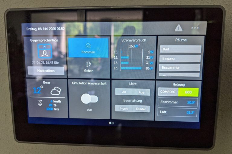 In the flat I live in is a DigitalStrom Server installed. This thing lets us control light and blinds in lazy mode. Next to the door is a tablet mounted to the wall that shows additional info like current power usage, temperature, etc. An old